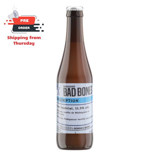 Pre-orderAdd to wishlistBad BonesBad Bones - Prescription €26,99 In stock Make a choice: *Default - €26,99Add to cartLogin for wishlist Expected time of deliveryShipped today? You got 00 : 00 : 00TrustpilotDescriptionShareImperial Stout brewed with cacao nibs, Madagascar vanilla and coconut. Deep roasted chocolate and dark coffee lead into creamy coconut sweetness, rounded off by smooth vanilla in a long, indulgent finish Facebook Whatsapp